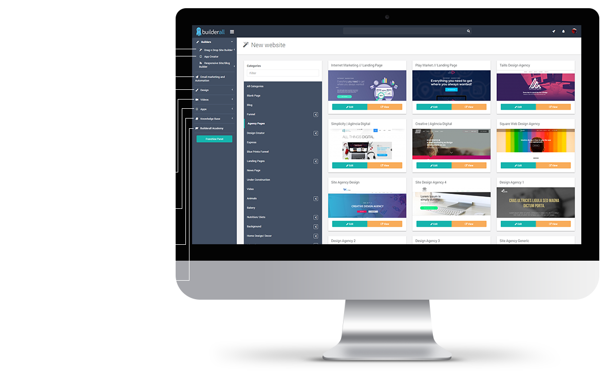 Crea siti web professionali, negozi virtuali, Sales Page, Capture Page, o qualsiasi altro tipo di pagina di Internet Marketing con il nostro Sitebuilder incredibilmente intuitivo. Facile costruire il sito web che hai immaginato con la nostra tecnologia Drag & Drop e decine di altre applicazioni integrate.